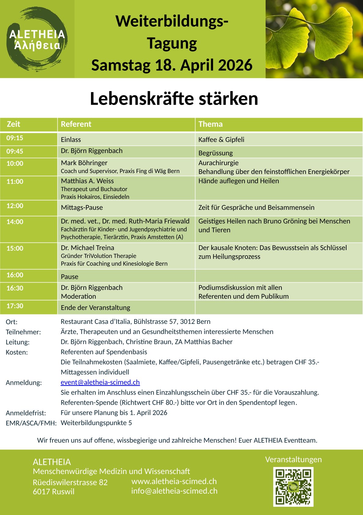 ALETHEIA Weiterbildungs-Tagung mit dem Thema – Lebenskräfte stärken.