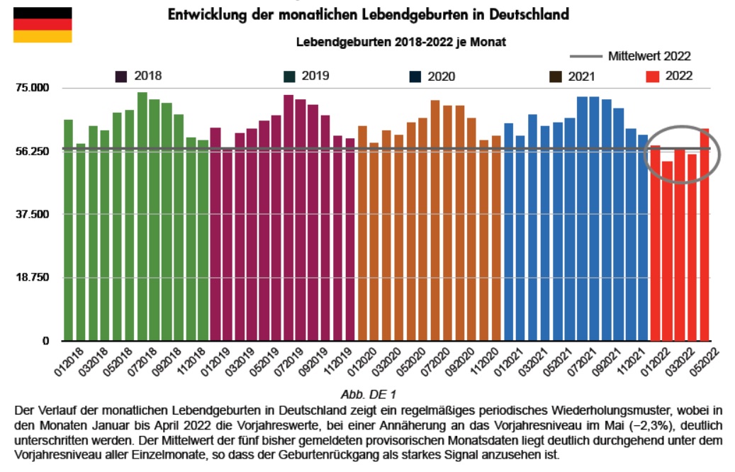 In der Summe aller Meldungen der untersuchten Länder sprechen wir aktuell von einem Minus von 88.555 Geburten, wobei u. a. mit Italien und Großbritannien noch große Nationen zur Bewertung ausstehen.”