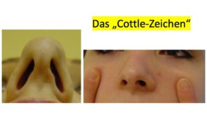 Ein Hinweis auf diese, wie wir Rhinologen sagen, „dynamische Nasenklappenstenose“ ergibt sich, wenn der Patient durch ein Auseinanderziehen der Nasenflügel eine deutliche Atmungserleichterung verspürt. Diese Besonderheit wird nach dem amerikanischen Rhinologen Cottle als „Cottle-Zeichen“ benannt.